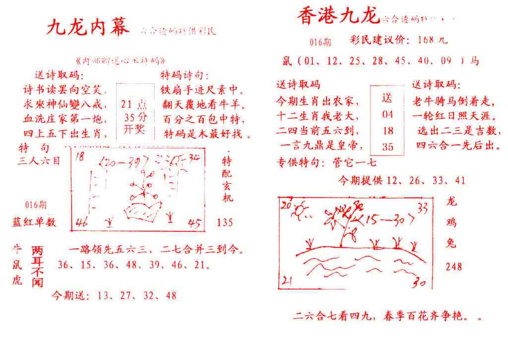 1532 正宗金牌报 1533 新喜报 1534 九龙内幕A 1535 九龙内幕B