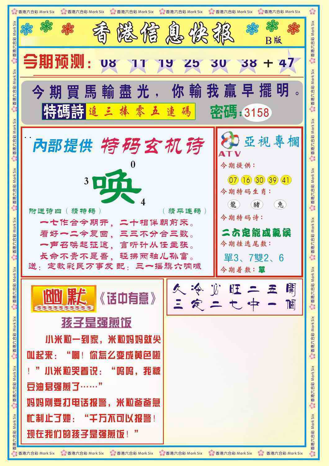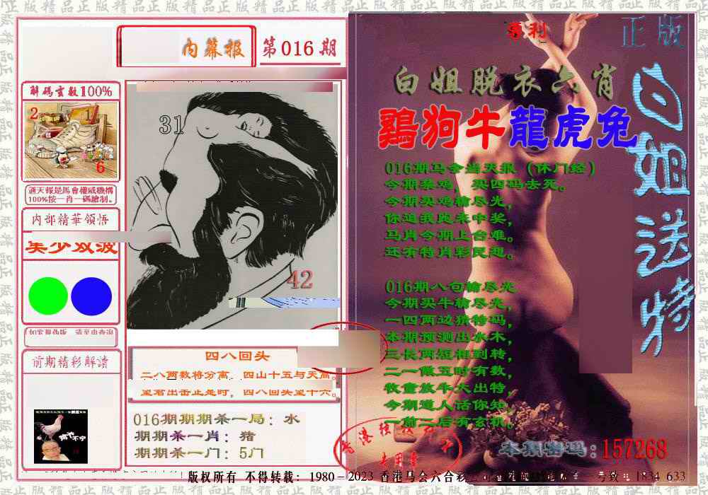 1581 精准传真报 1582 新天线宝宝内幕报 1583 当期狗仔版 1585 白姐泄密