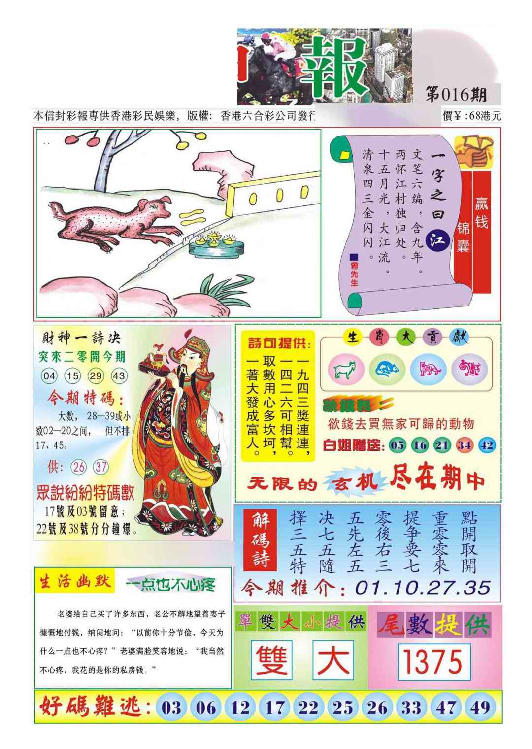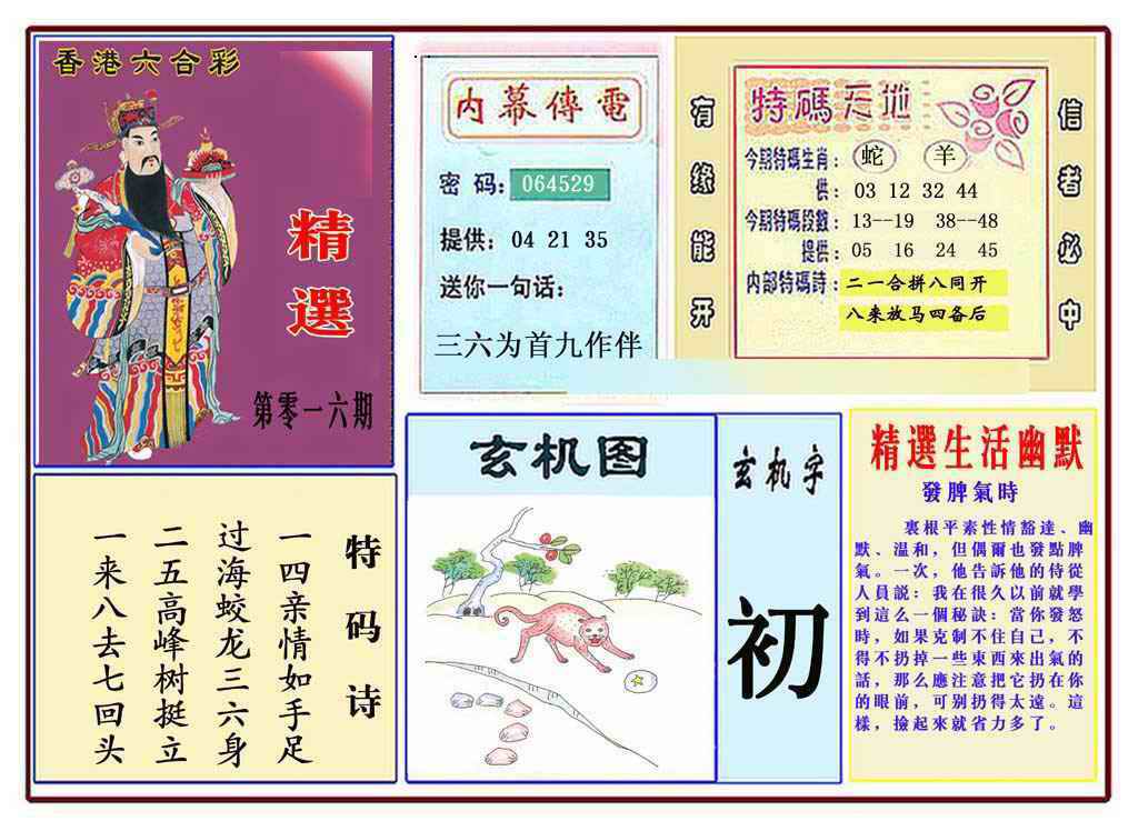 063 六合禅机A 064 六合禅机B 069 特 新 报A 070 特 新 报B