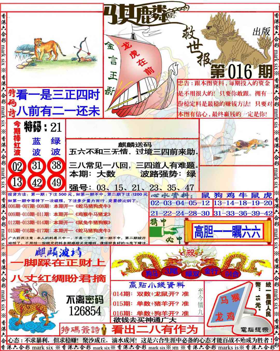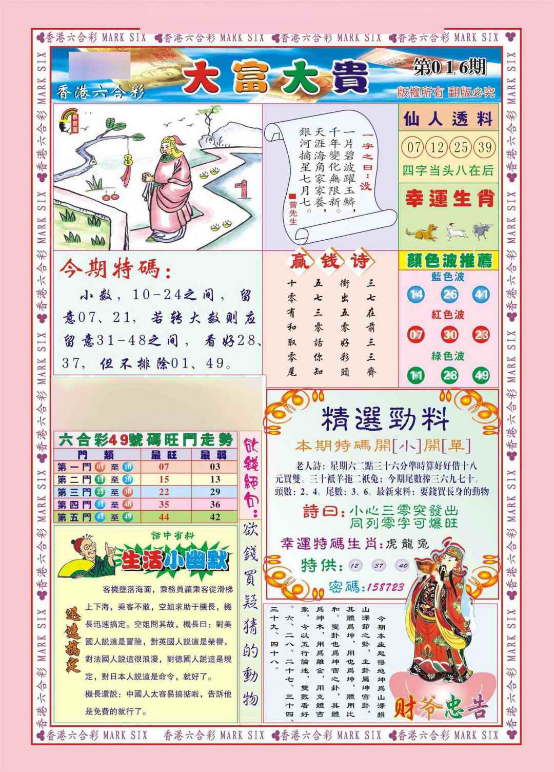 1760 大富翁 1761 侨乡狂扫黑庄 1765 马经王牌料 1766 香港马会专刊A